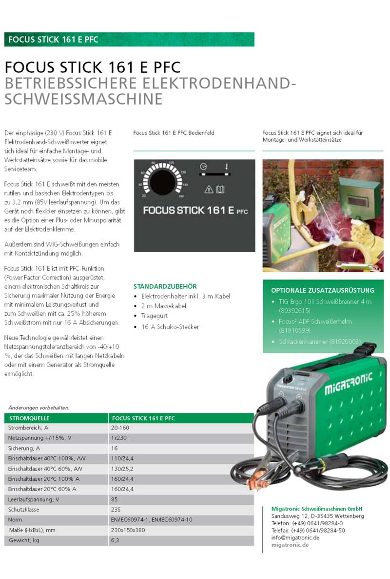 Migatronic Focus STICK 161 E PFC | mi79337042 | Prospekt | ||